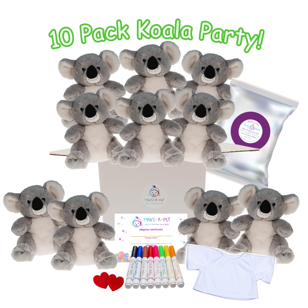 Our Koala Theme Ten Pack Party Fuzzy Kit comes with the following: